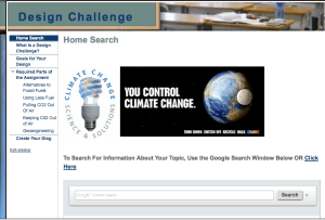 Drawing on the notion that deep, engaged learning occurs when students explore self-selected, open-ended questions about which they are genuinely interested, the last two weeks of the unit involved students in completing an inquiry project.  This project challenged the students to build on what they had learned during the first part of the unit and take it further by designing a tool, technique, or campaign to combat climate change.  Each group chose a focus (from a bank of five choices), conducted online research, and went about inventing a way to lessen the effects of climate change.  The design challenge Google site spells out the project parameters and the assignment guidelines.