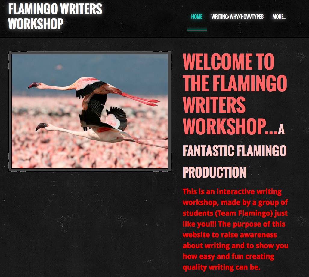 Writing Website created by the Flamingo Writers; weebly.com |