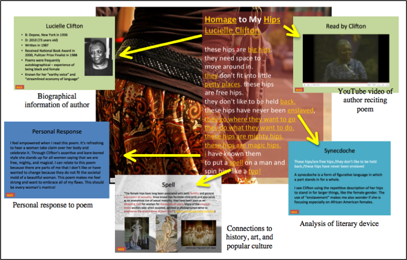 “The end result was a win-win-win: I not only had my students engaged in the writing of poetry across various forms, but also they were able to use technology to publish a digital book of original writing, learning along the way about how the World Wide Web works, how to use elements of web design for writing, and understanding the need to attribute art to the original owners.” http://www.middleweb.com/22690/how-we-took-poetry-writing-into-digital-spaces/