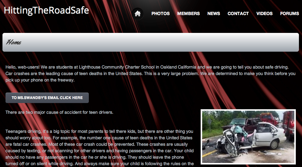 Melanie Swandby, a 7th grade teacher at Lighthouse Community Charter School in Oakland, CA was conducting a service learning project geared toward promoting safe driving habits. Melanie was happy to explore digital content creation with her students, extending her original vision for the project with the goal of producing clear and coherent writing in which the development, organization, and style were appropriate to task, purpose, and audience (CCSS Initiative, 2010). She invited Heather Cotanch and I to explore the use of iPads to create digital products that would resonate with teens and the wider community. We were excited to witness the content creation process which included elements of collaboration, experimentation, and flexible grouping to support peer facilited tech-help.